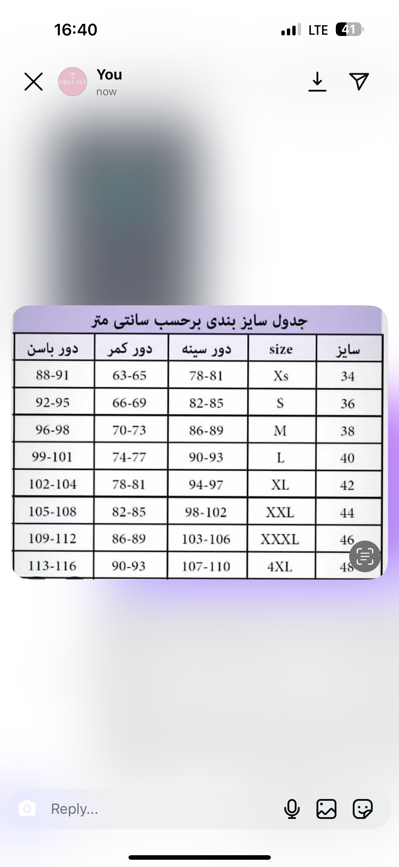 سایز را انتخاب کنید.
